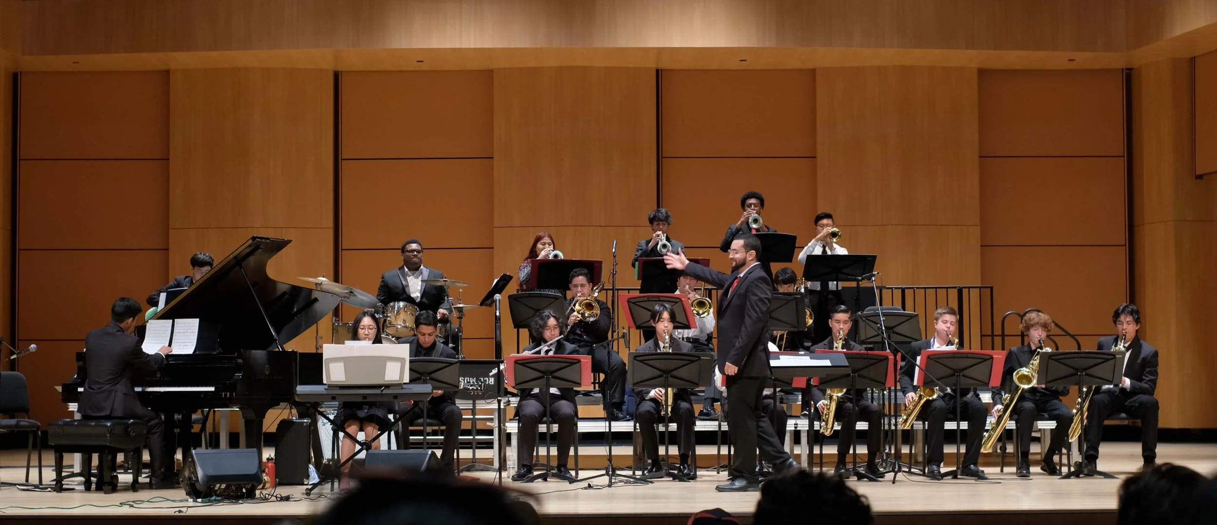 The Ayala Jazz Ensemble is a year-long, audition-based class for intermediate and advanced Jazz musicians. Students rehearse and perform many styles of music; swing, Afro-Cuban, Latin, samba, rock, funk, and contemporary. The Jazz Ensemble attends a variety of local high school jazz festivals during the spring semester, including an annual tour to the prestigious Reno Jazz Festival, a four-day event at the end of April where over 300 performing groups from around the nation come to compete, and world renowned jazz musicians, clinicians, educators, and composers judge the event. The Jazz Ensemble is led by Kyle Martinez.